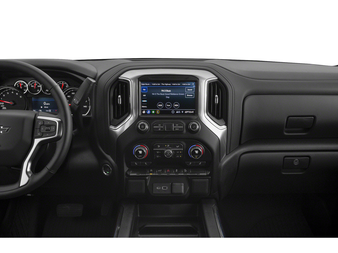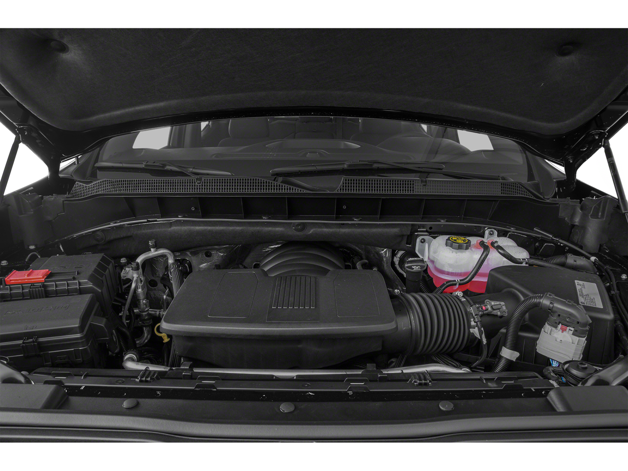 CONVENIENCE PACKAGE II includes (UG1) Universal Home Remote, (A48) rear sliding power window, (KI4) 120-volt power outlet, (KC9) 120-volt bed-mounted power outlet, (IOS) Chevrolet Infotainment System with 8" diagonal color touch-screen with (MCR) USB ports, SiriusXM with 360L, (U2L) HD Radio and (UVB) HD Rear Vision Camera Includes (UQA) Bose Premium Sound System. Certain 21MY vehicles will include (RG0) Not Equipped with HD Radio, which removes (U2L) HD Radio. See dealer for details.), WHEELS, 20" X 9" (50.8 CM X 22.9 CM) HIGH GLOSS BLACK PAINTED ALUMINUM, AUDIO SYSTEM, CHEVROLET INFOTAINMENT 3 PLUS SYSTEM 8" diagonal HD color touchscreen, AM/FM stereo, Bluetooth® audio streaming for 2 active devices, wireless Apple CarPlay® and Android Auto® capable, voice recognition, in-vehicle apps, cloud connected personalization for select infotainment and vehicle settings. Subscription required for enhanced and connected services after trial period. TRANSMISSION, 10-SPEED AUTOMATIC, ELECTRONICALLY CONTROLLED with overdrive and tow/haul mode. Includes Cruise Grade Braking and Powertrain Grade Braking (STD) (Most vehicles built on or after 6-7-2021 with a V8 engine and (MQB) 10-speed automatic transmission will have (NSS) Not Equipped with Automatic Stop/Start, which removes Automatic Stop/Start and its content.). Chevrolet LT Trail Boss with Red Hot exterior and Jet Black interior features a 8 Cylinder Engine with 355 HP at 5600 RPM*.